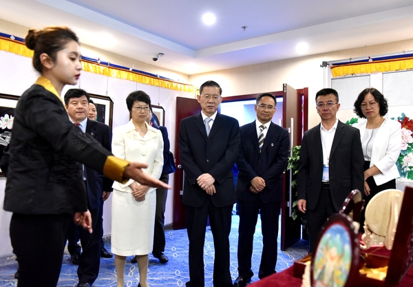 郝明金参观青海省职业教育与非遗传承融合发展作品展