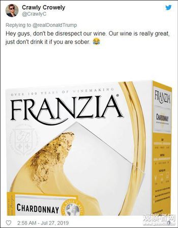 据“政客”新闻网(Politico)消息,26日发完推特后,特朗普在椭圆形办公室被问及这个问题,滴酒不沾的他表示:“我一直更喜欢美国葡萄酒,而不是法国葡萄酒。即使我不喝酒,我只是喜欢它们的样子?!?/p>
