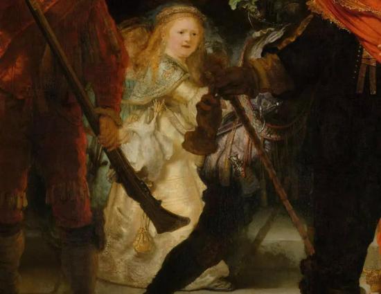 4。伦勃朗《夜巡》有50个以上待解决的疑点,当中最奇怪的是画中的女孩。