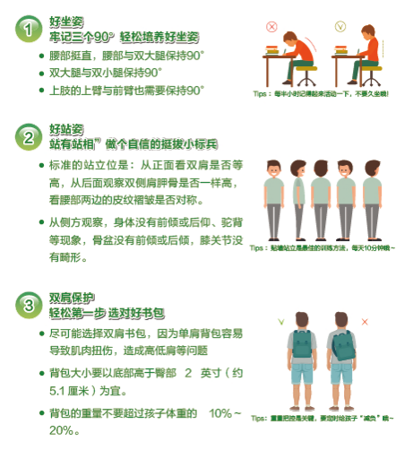 (来源:由中国儿童少年基金会与美国迪巧联合发布的《儿童脊柱健康管理手册》下同)