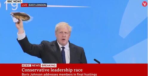 原标题:曾在演讲中掏出腌鱼的英国新首相,这次谈脱欧又抱起一只鸡
