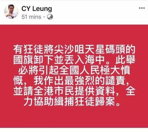 梁振英怒了!悬赏百万港币缉拿将国旗扔海中暴徒