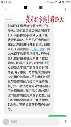 武汉城市一卡通有限公司表示,初步判断为手表物理芯片问题导致余额错误,将展开调查。