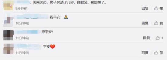 有网友表示,“闽南这边,房子晃动了几秒,睡眠浅,被震醒了?!?/p>