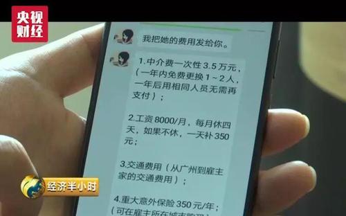 这家家政服务公司在过去的几年时间里,仅仅通过网络联系,就将七八十名境外不合法滞留人员介绍给国内的很多家庭,生意做得很不错。 随后,央视财经《经济半小时》记者见到了另一家来自深圳的中介,中介还带来了前来面试的外籍保姆,这名外籍保姆什么证件都没有,就是一名黑工。 当记者提出谁为这名外籍保姆担保的时候,这名中介讲了实话,其实,他根本没有什么公司,说白了就是一个人,他只是有关系能找到外籍保姆,带着她们四处招揽生意,他个人赚取中间费用。他还拿出了和其他消费者成交的微信转账记录。