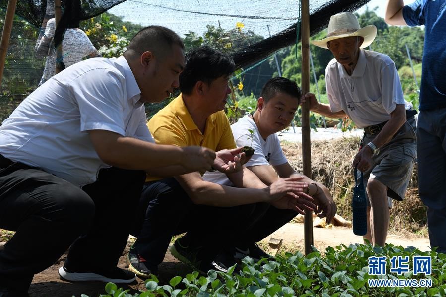 8月18日,“老监工”胡茂杰(右一)在赤水市丹润农业发展有限公司扶贫基地查看育苗情况。