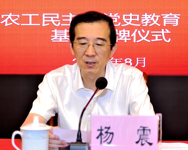 杨震在出席揭牌仪式时表示,批准成立中国农工民主党党史教育(六安)基地体现了农工党中央对农工党安徽省委会和农工党六安市委会的充分信任和高度肯定。他希望农工党安徽省委会和六安市委会管好、用好党史教育基地,使党史教育基地长期有效地发挥存史、资政、团结、育人的作用;也希望广大农工党党员从历史中汲取不断前行的力量,切实担负起中国特色社会主义亲历者、实践者、维护者、捍卫者的政治责任和历史使命,共同推动新时代高素质中国特色社会主义参政党建设,齐心协力谱写统一战线和多党合作伟大事业新篇章。