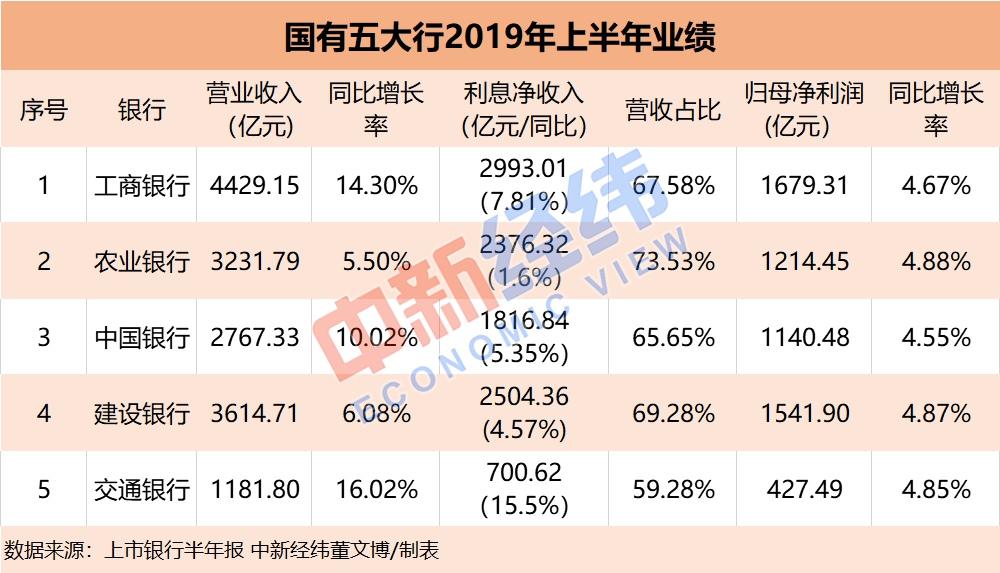 中新经纬客户端8月31日电 (董文博)8月30日晚间,农业银行2019年中报数据公布,至此,国有五大行上半年业绩全部亮相。