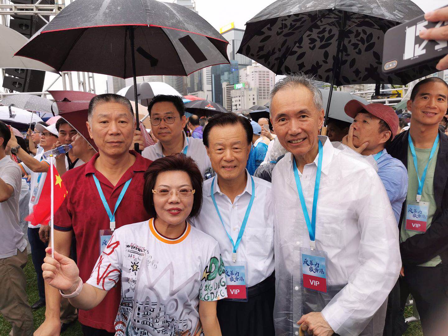 △全国政协委员施维雄(右一),屠海鸣(右二)、蔡黄玲玲(左二)、高佩璇(左一)在“反暴力 救香港”活动中