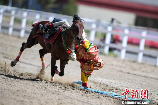 图为马上拾哈达表演。 何蓬磊 摄