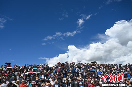 雪顿节民族传统马术表演9月1日在拉萨市赛马场举行,数千人的观众看台座无虚席。