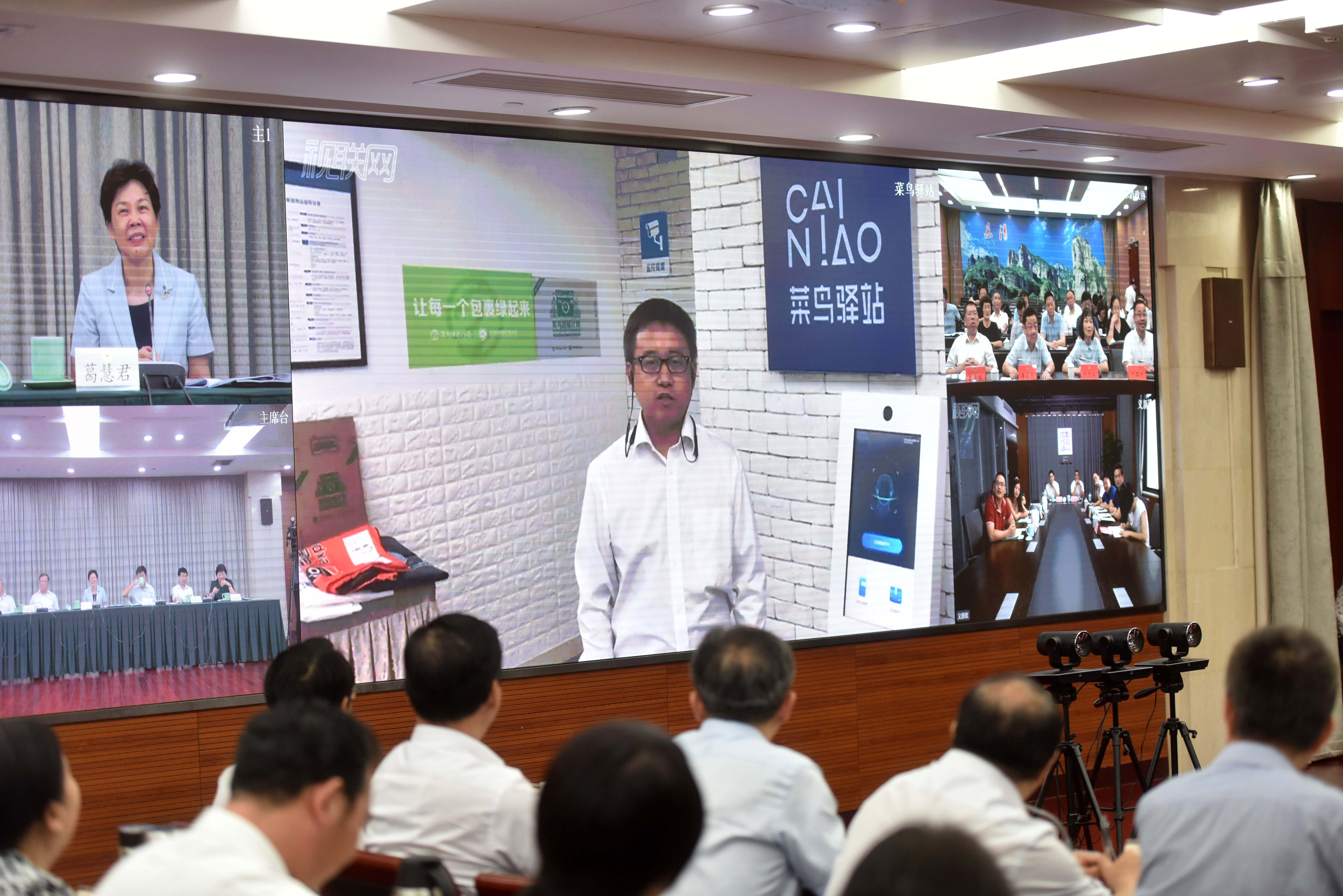 作为快递最后100米绿色行动的标杆,菜鸟驿站现场连线亮相,这一行业协同、共建共享的绿色创新模式,获浙江省政协主席葛慧君及在场政协委员的一致肯定。