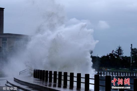 资料图:受“利奇马”影响,一公园海滨卷起巨浪。 图片来源:视觉中国