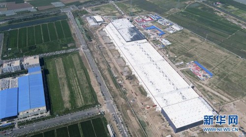 7月23日无人机拍摄的位于上海临港产业区的特斯拉上海超级工厂。 新华社记者 丁汀 摄