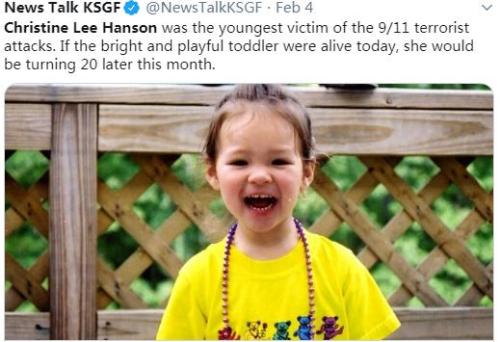 克里斯汀?李?汉森是“9?11”悲剧中最年轻的受害者。