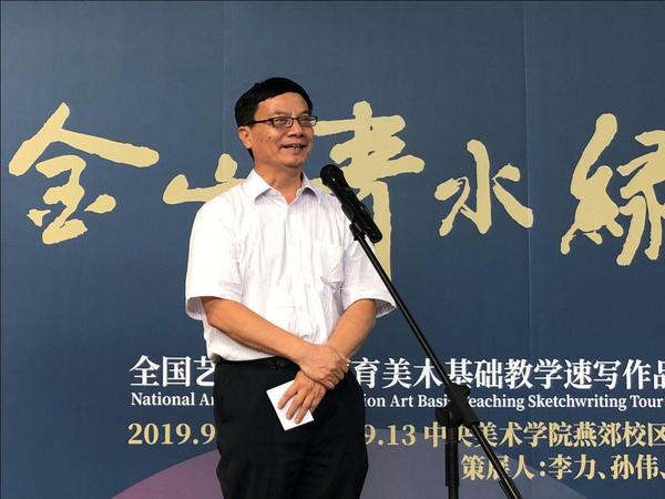 中国艺术职业教育学会副会长兼秘书长孙伟在致辞中首先代表中国艺术职业教育学会美术与设计专业委员会向对本次展览指导和支持单位表示衷心的感谢。他在致辞中说:“美术教育是美育的重要组成部分,对塑造美好心灵具有重要作用。此次展览以“绿水青山,金色乡愁”为主题,旨在号召广大师生和艺术从业者,着眼祖国的大美山川、人文胜景,扎根时代生活,同时结合中国艺术职业教育自身教育教学特点,以基础教学研究为切入点,把对家国的文化情怀和美丽中国现实景象,用专业速写的手段进行生动的表达和呈现,用展览推动生态文明理念深入人心,培养当代学生的文明公民意识。同时通过各地巡展期间组织召开研讨会,推动基础教学,突出学术性,切实推动基础美术教育研究和水平更上层楼,向新中国成立70周年献礼?!?/p>