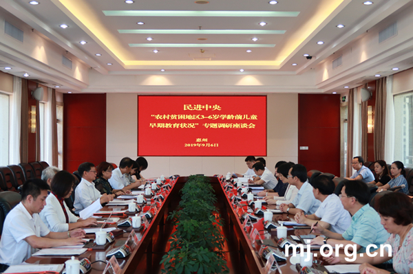 6日至8日,“民进中央农村贫困地区3-6岁学龄前儿童早期教育状况座谈会”先后在惠州市、河源市、清远市召开,民进中央妇女儿童委员会副主任刘志茹代表调研组介绍调研背景?;嵘?,市教育、民政、财政、编办、人社、发改、妇联、自然资源等政府相关职能部门负责人及幼儿园、教师代表围绕调研课题分别介绍情况,与会同志结合乡村振兴和脱贫攻坚工作,就本地区3-6岁学龄前儿童早期教育现状、经费保障、师资情况、入园率、教育观念和存在困难等问题与调研组成员进行交流。