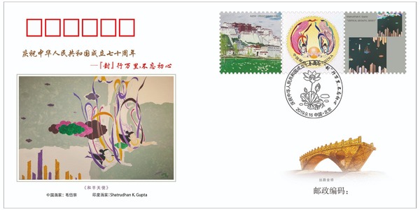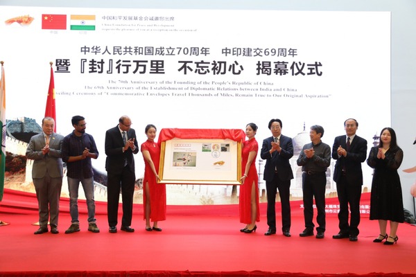 为纪念中华人民共和国成立70周年和中印建交69周年,由中国和平发展基金会发起,中宇力度文化有限公司主办的“‘封’行万里,不忘初心”中国-印度纪念封的揭幕仪式16日在京举行。由中印两国艺术家创作的中国-印度纪念封正式揭晓。