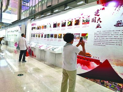 据介绍,本次展览分为建国大业、民族团结、英雄赞歌、山河故事、文化繁荣、幸福生活、祖国花朵7大板块,展出了200多册当年出版的连环画原书,与展墙上200多册连环画的内容一一对应又绝不重复,部分连环画还配有二维码,观众可以现场扫描阅览电子书。