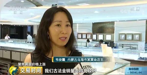 内蒙古乌海市某黄金店主 韦俊霞:今年的黄金销售古法金销量走得比较好,现在销量还在持续上升,我们现在销量也比去年约能上升到20%-25%,一直在持续上涨。