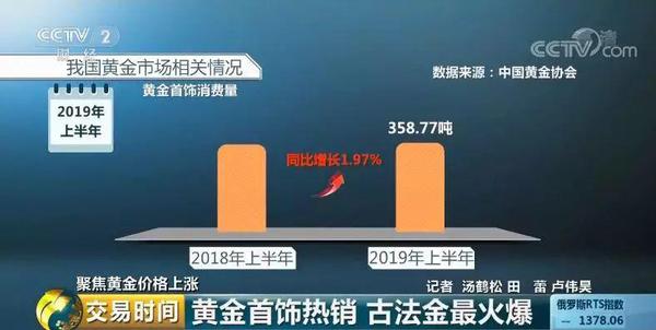 中国黄金协会数据显示:2019年上半年,黄金首饰消费稳中有升,全国黄金首饰消费量达到358.77吨,同比增长1.97%,其中销售最火爆的是蕴含传统文化的古法金。