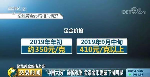 今年6月以来,国际金价连续上涨,以足金为例,今年年初价格大约每克350元每克左右,现在已经涨到了410元每克以上,每克涨幅在60元以上。深圳水贝一家黄金零售门店展厅经理告诉记者,曾经黄金市场有买涨不买跌的特点,但是最近三个多月金价上涨,店里的人流量比以往增多,但是大部分看多买少。