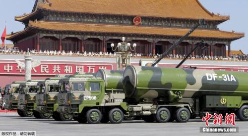 资料图:2015年9月3日,纪念中国人民抗日战争暨世界反法西斯战争胜利70周年大会,东风-31弹道导弹发射车接受检阅。