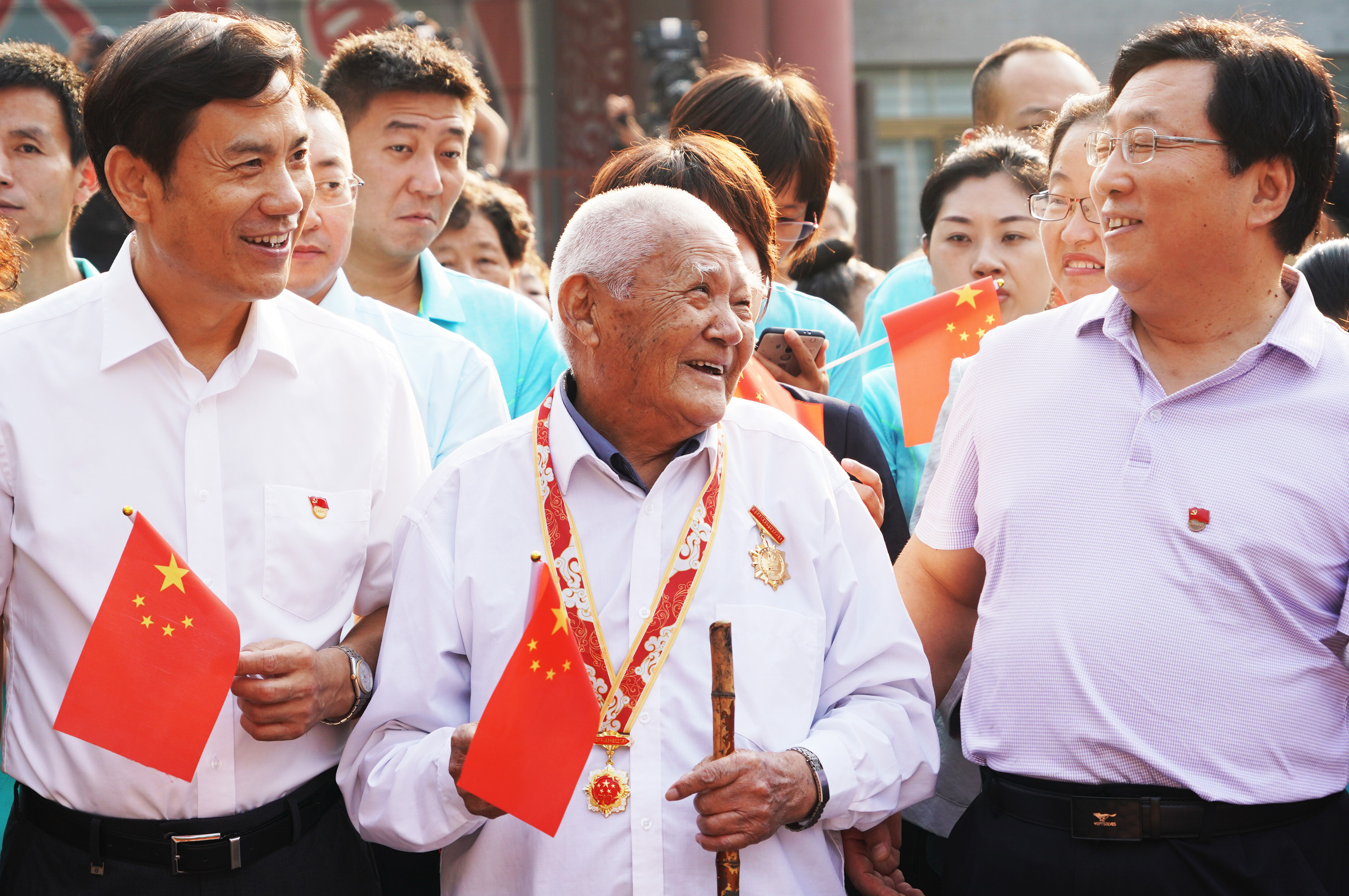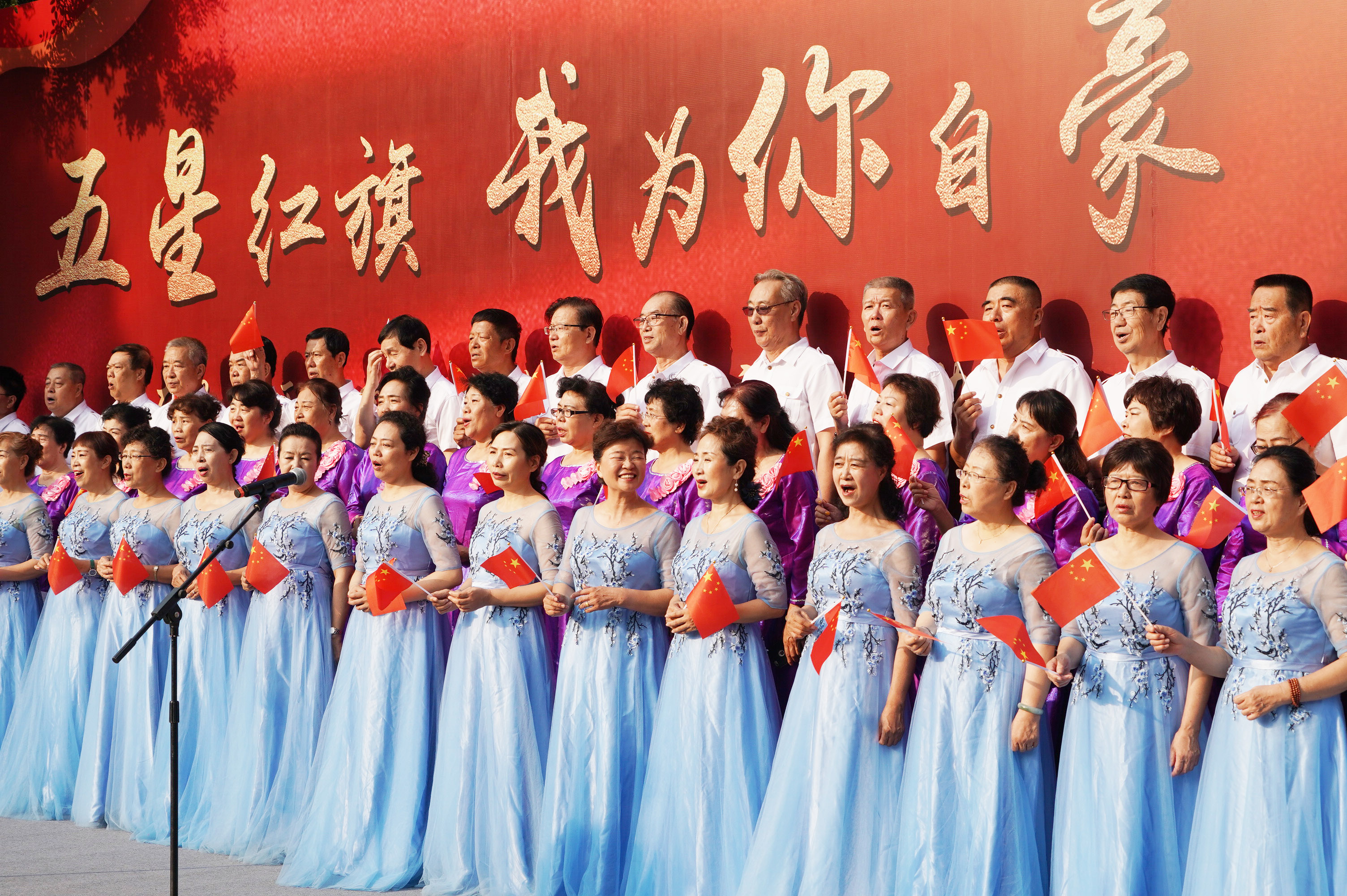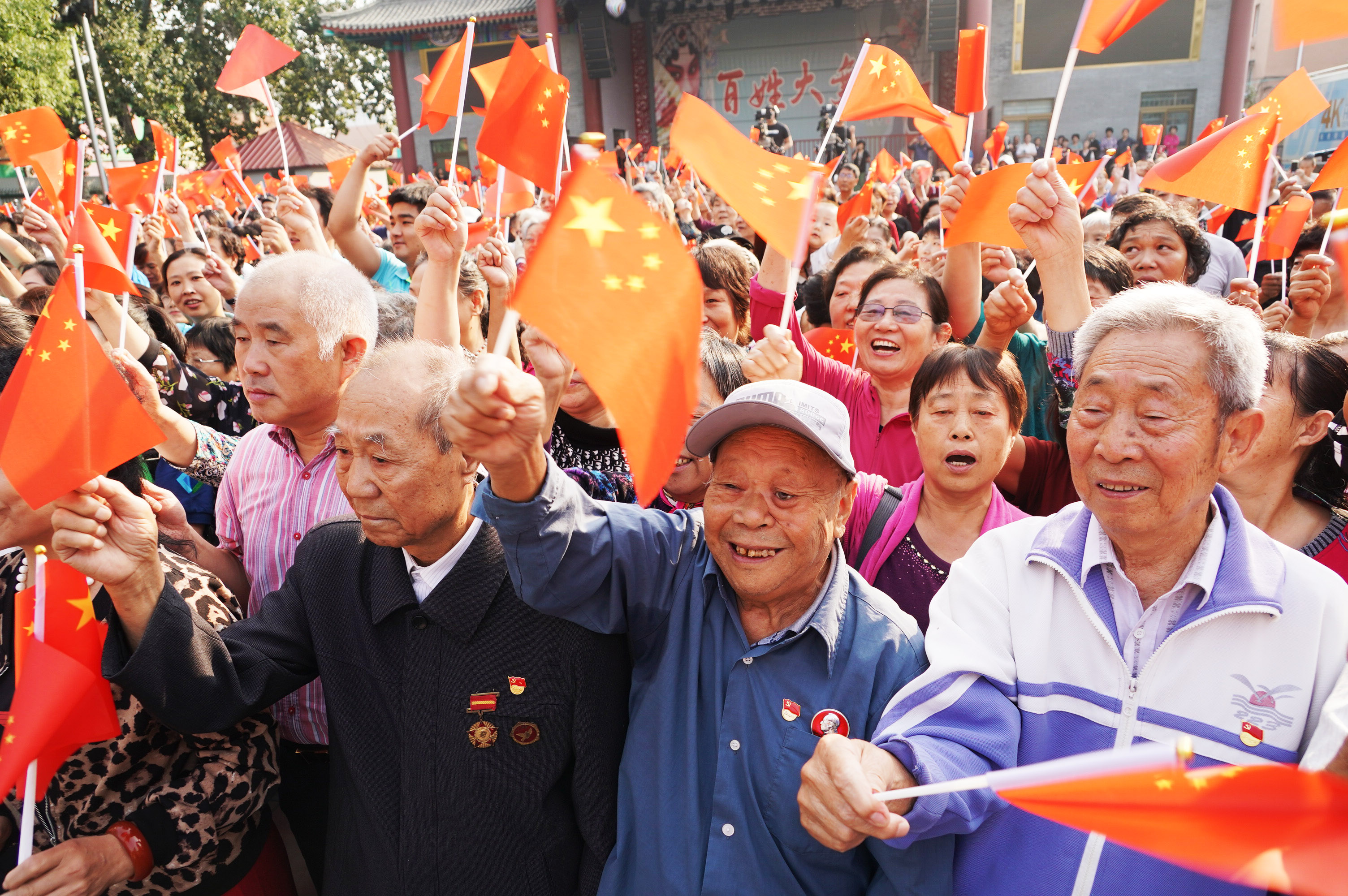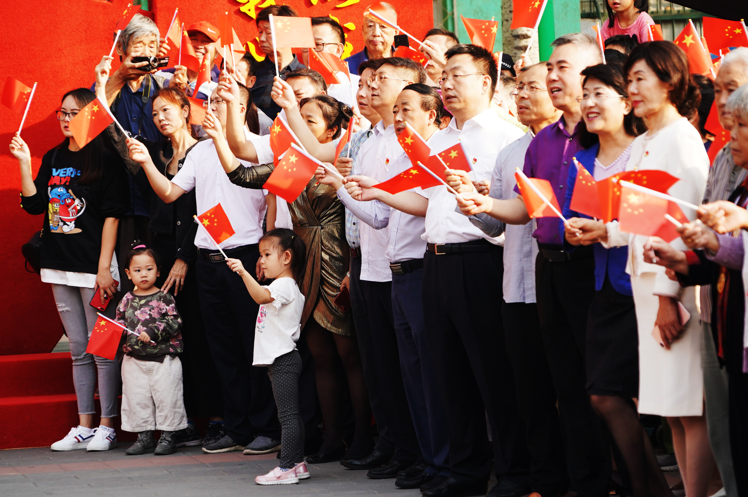 500余名北京石景山老街坊同升国旗共贺国庆