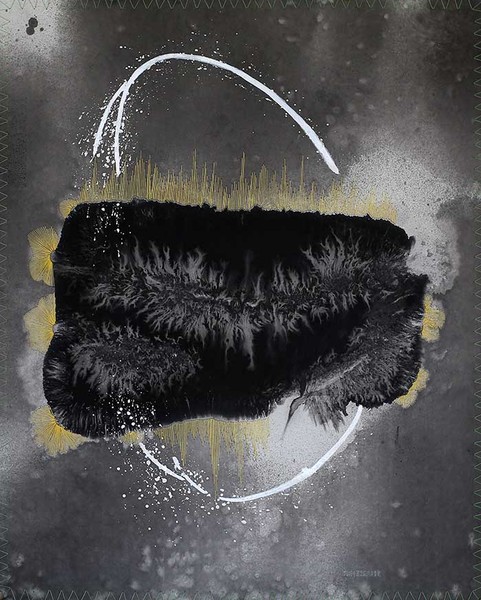 尚春的作品中运用了刺绣的方法,丝线在宣纸上轻盈地穿过灼烧后的孔洞。红色在沉寂的灰色水墨中吹响号角,交叉的线条像阳光一样辉煌,也像伤疤一样触目。这其中包含着他对“融合”的认知:融合是两种相异事物的碰撞,包含着解构和妥协的痛苦。但最终却指向变革和新的和谐。策展人把展览命名为“融变”,这不仅是尚春创作历程的真实写照,也是艺术家苦苦追寻的时代命题。