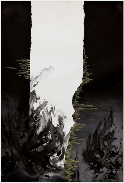 解决系列3 宣纸水墨、 丝线 103x68cm 2019