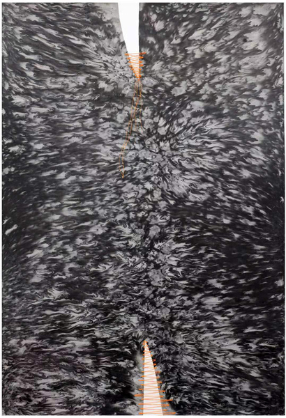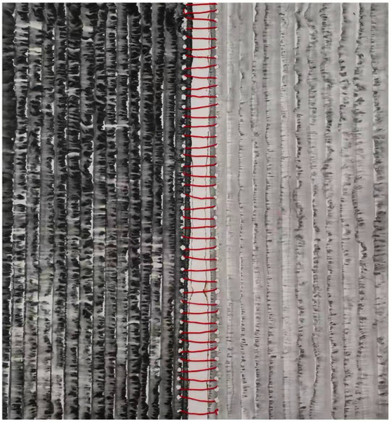 缝合系列1 96cm×93cm 宣纸水墨 毛线 2017年(图片由艺术家提供)