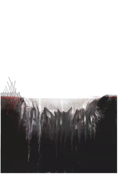 解决系列6 宣纸水墨、 丝线 103x68cm 2019