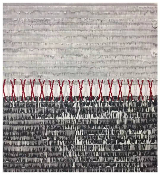 缝合系列2 96cm×93cm 宣纸水墨 毛线 2017年(图片由艺术家提供)