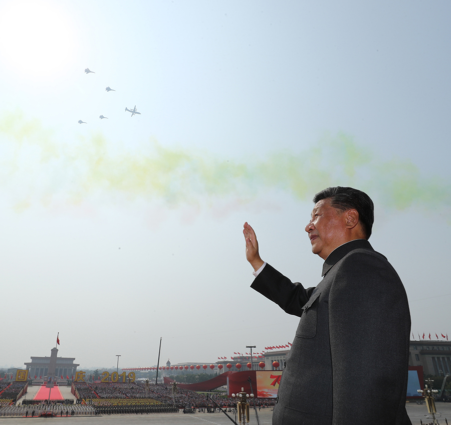 10月1日上午,庆祝中华人民共和国成立70周年大会在北京天安门广场隆重举行。中共中央总书记、国家主席、中央军委主席习近平发表重要讲话。 新华社记者 谢环驰 摄