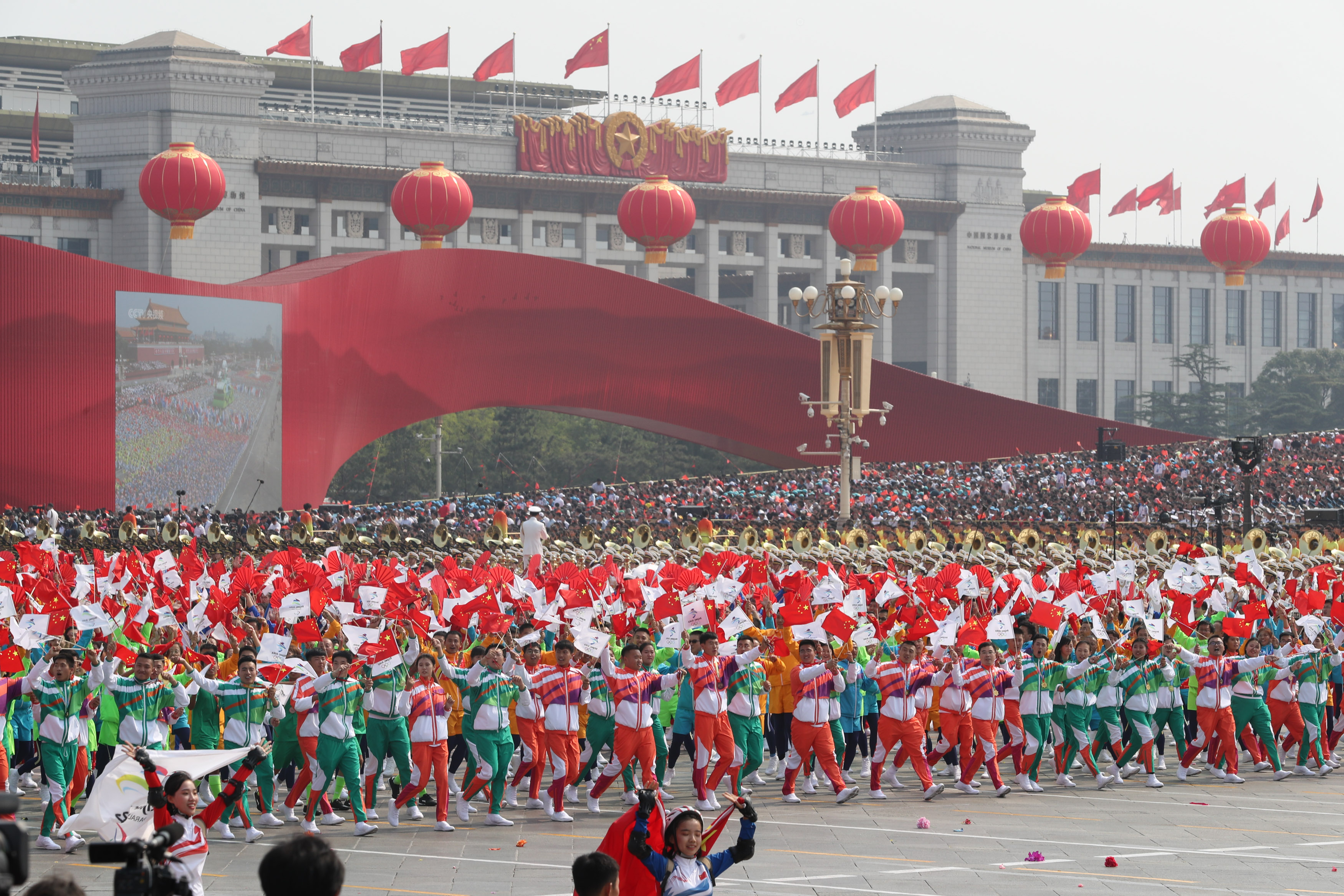 游行队伍通过天安门城楼时,我看到习主席正向我们挥手致意,我心里感觉特别温暖,倍感亲切。