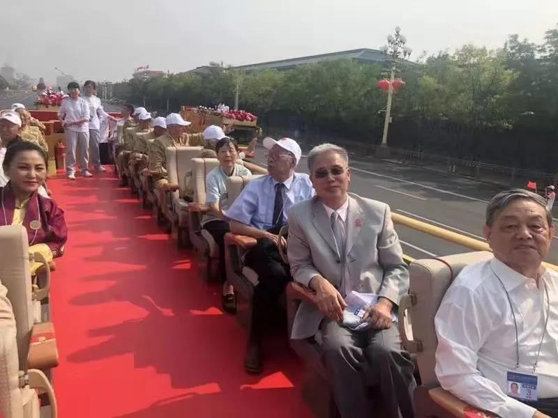 10月1日上午11时,我们的车队从国际饭店开出来以后,沿途受到群众的热烈欢呼和摇动花束致敬,这令我十分受感动。当我乘坐的11号车经过天安门城楼中央时,看到习近平主席在向我们招手,我禁不住起身向习近平主席鞠躬致敬,向人民鞠躬致敬。尽管游行指挥部事前通知我,在礼宾车行进的过程中不要站起来,但是我无法抑制当时激动的心情,不顾一切地站起来鞠躬行礼。