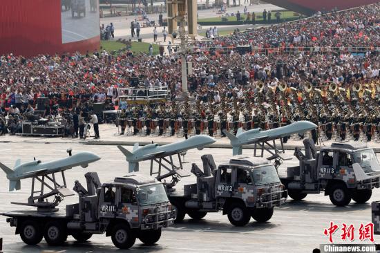 10月1日上午,庆祝中华人民共和国成立70周年大会在北京天安门广场隆重举行。图为受阅的无人作战第1方队。中新社记者 盛佳鹏 摄