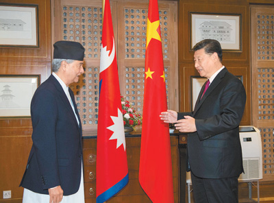 10月12日,国家主席习近平在加德满都下榻饭店会见尼泊尔大会党主席德乌帕。