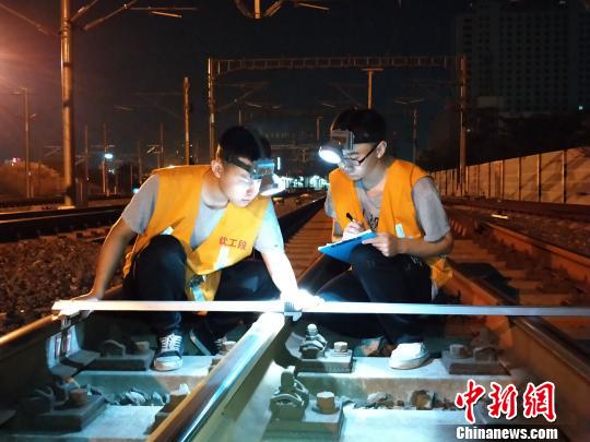 铁路工人连夜排查线路安全隐患。 铁路供图 摄