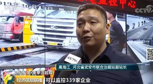 河北省武安市联合治超站副站长 高海江:监控企业的出车情况、装载情况。现在武安一共可以监控339家企业,这个是实时的,屏幕上会显示它的车牌信息,还有装载数量(重量)。
