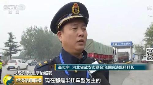 高志宇:现在都是半挂车型为主的,三轴以上的,这些超限车辆现在还有,拉钢材、石料、还有水泥等。经检测它如果是超限车辆,会登记下来先卸载,卸载完以后这些货物允许他们分装运回。