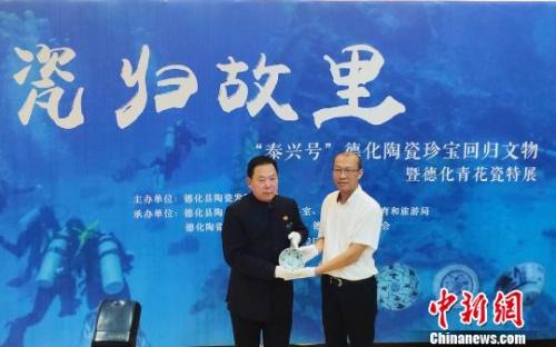 以“泰兴珍瓷回归故里”为主题的“泰兴号”沉船德化陶瓷珍宝回归系列活动,12日在“世界陶瓷之都”福建德化举行,400件从清代沉船“泰兴号”出水的德化瓷器回到故里。