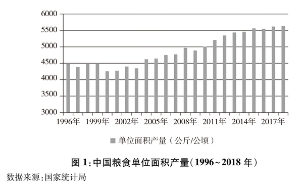 图1:中国粮食单位面积产量(1996~2018年)(新华社发)