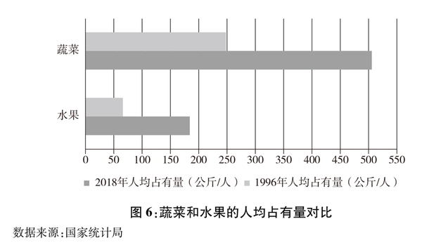 图6:蔬菜和水果的人均占有量对比(新华社发)