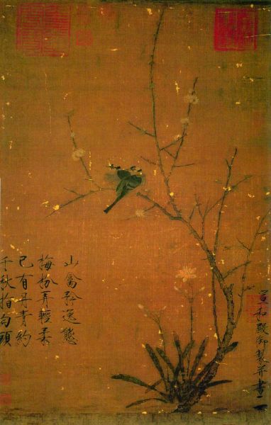 腊梅山禽图 (绢本设色) 宋 赵佶 台北故宫博物院藏