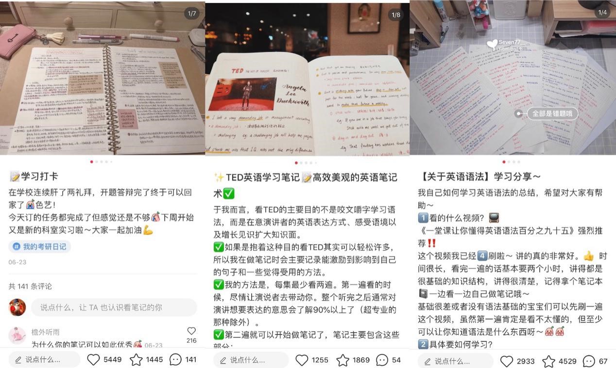 据了解,小红书上年轻人最关注的热门话题之一是学习,社区里有近60万篇学习相关的笔记,包括备战考研、读书分享、外语学习等不同类别的学习内容。仅去年一年,小红书用户在社区学习打卡就超过10万小时。