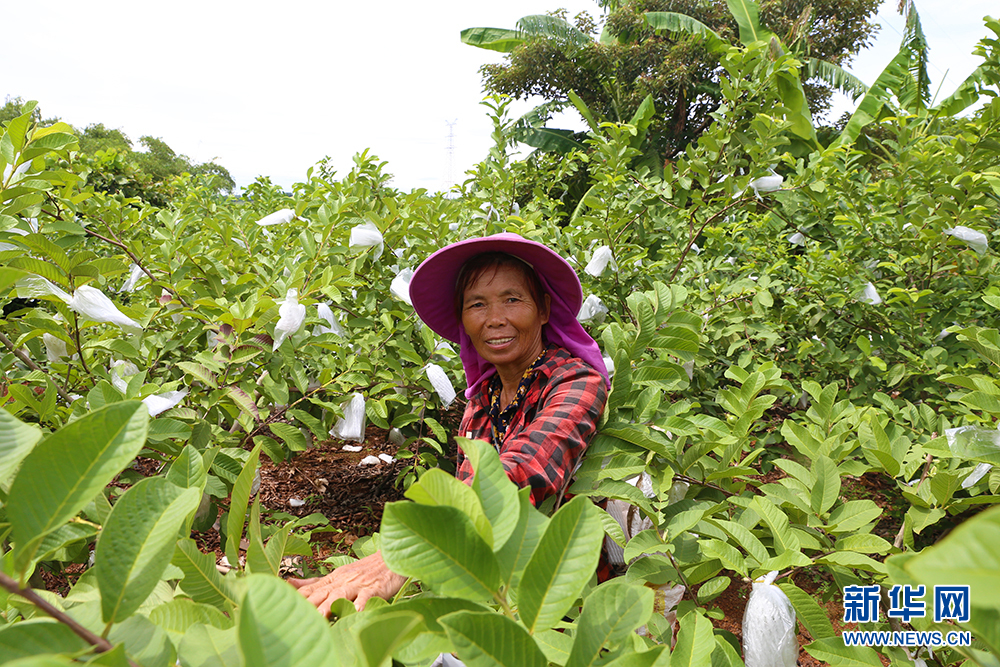 村民在打理自己的石榴园。新华网 黎多江 摄
