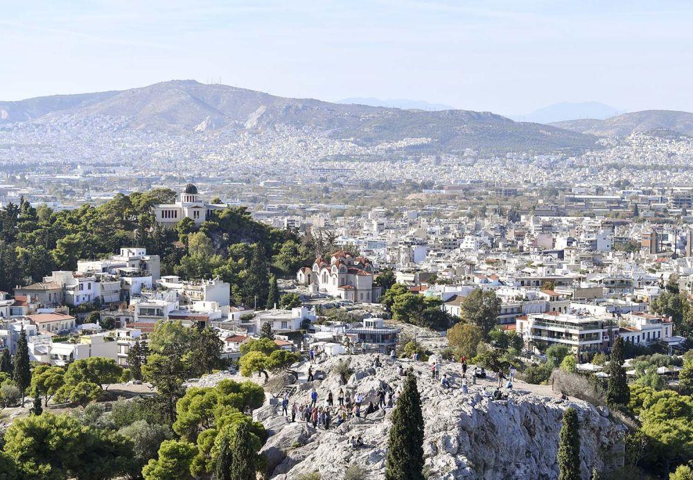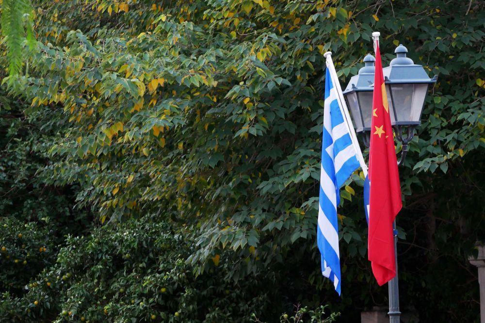 ▲希腊首都雅典街头已悬挂起两国国旗。新华社记者傅新宇摄