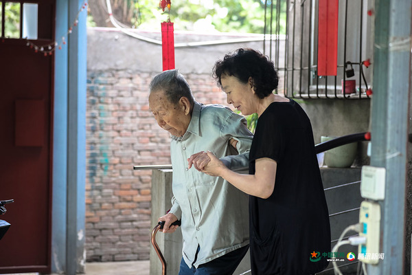 女儿王勇搀扶着父亲王志文下台阶。中国军网记者 伍行健 摄