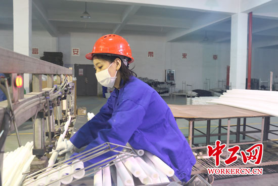 丽水市总工会组宣女工部科员潘菲菲正在为滤管装上?;ぬ住V泄ね钦咭︹紊?/p>